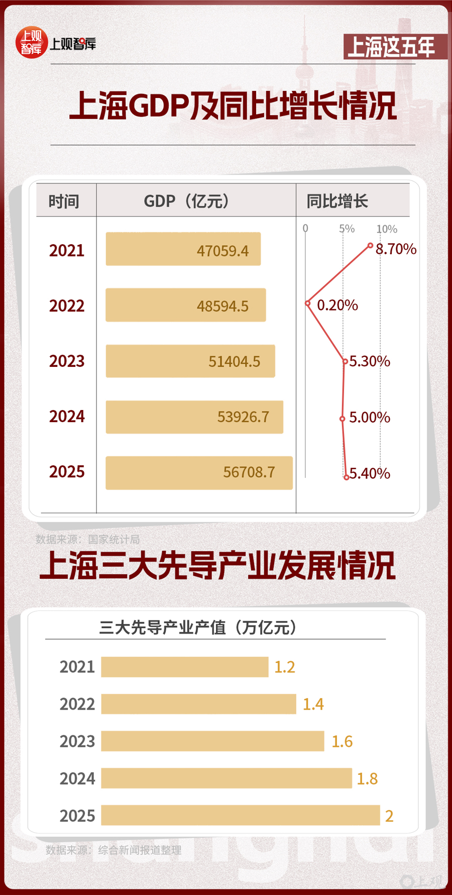 2023年,上海成为全国首个经济总量突破5万亿元的城市;2025年,上海GDP突破5.6万亿元,向下一个里程碑进发。